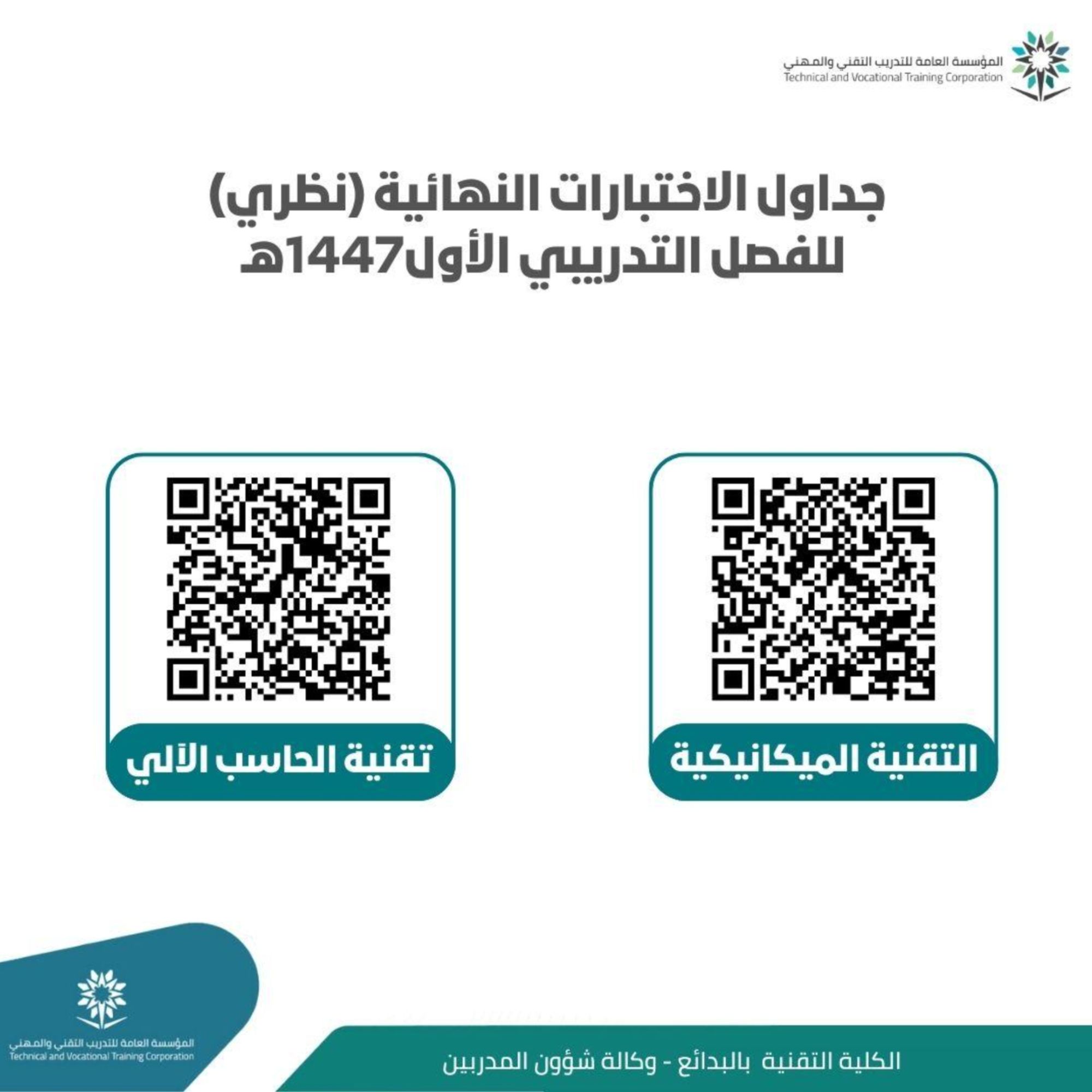 جدول الإختبارات النهائية نظري للفصل التدريبي الأول 1447