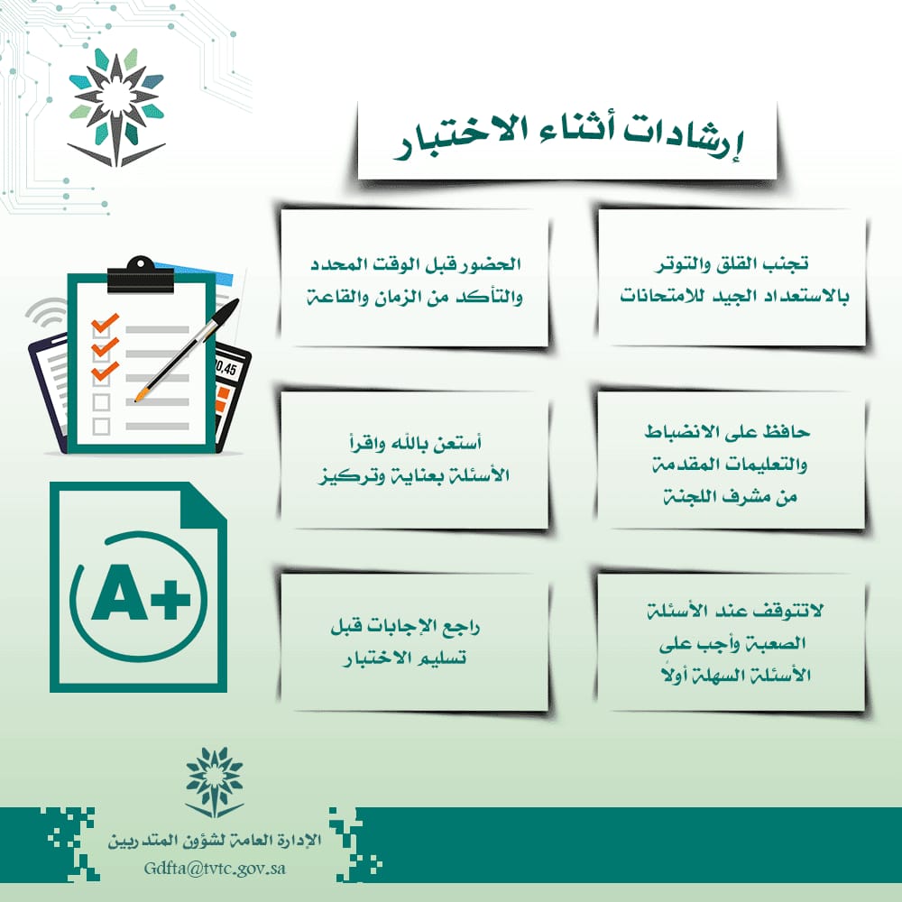 عزيزي المتدرب إليك إرشادات ونصائح للإختبارات النهائية