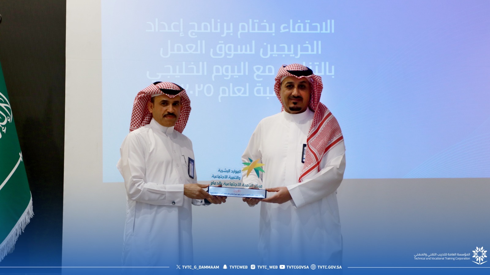 نظّمت الكلية التقنية بالدمام بالتعاون مع مركز التنمية الاجتماعية بالمنطقة الشرقية حفل اختتام برنامج إعداد الخريجين لسوق العمل بهدف تأهيلهم بمهارات تنافسية تلبي احتياجات سوق العمل، وذلك بالتزامن مع اليوم الخليجي للموهبة والإبداع.
