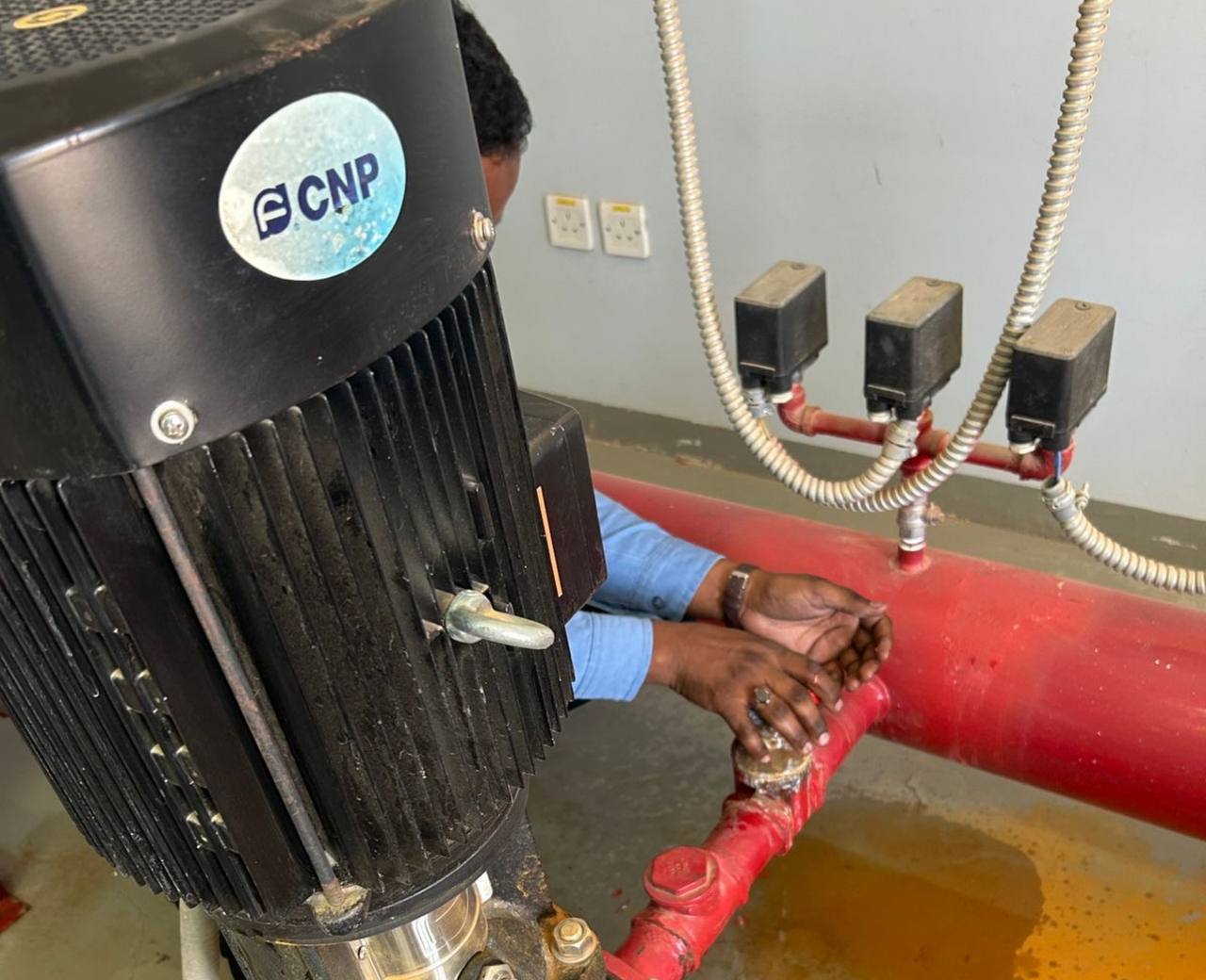 بجهود وتعاون منسق الصحة والسلامة المهنية وفريق العمل في الكلية التقنية المعهد الصناعي الثانوي بالحناكية تم تشغيل وصيانة مضخة الحريق تعزيزًا لمعايير السلامة ورفعًا لجاهزية أنظمة الوقاية في المنشأة