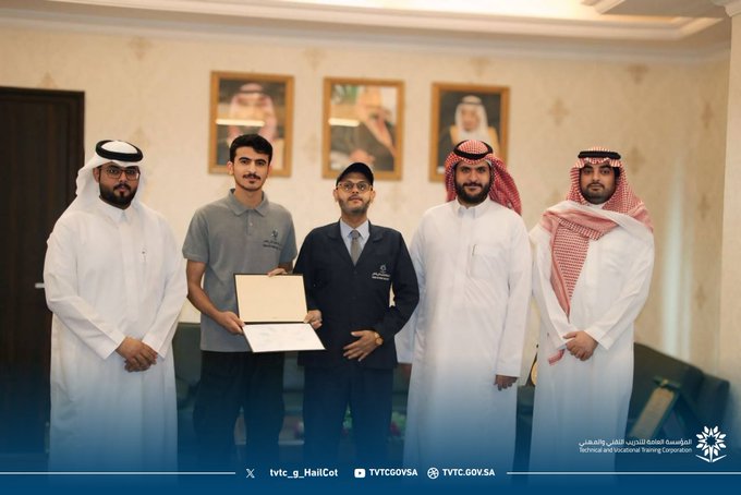 كرم سعادة عميد #الكلية_التقنية_بحائل الأستاذ / نايف بن خليل الأحمدي المتدربين الحاصلين على مكافأة التفوق العلمي للفصل التدريبي الثاني من العام ١٤٤٦هــ