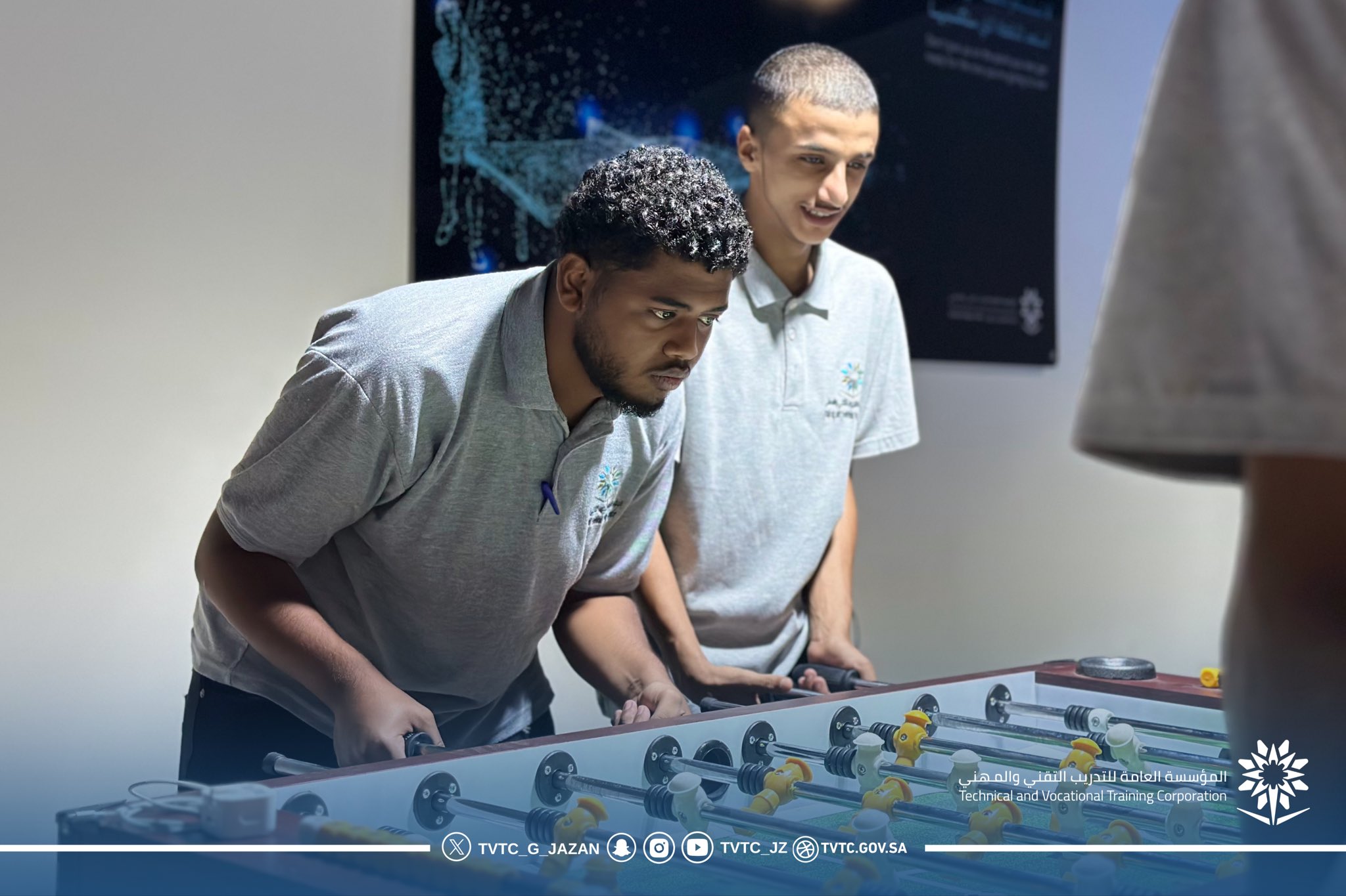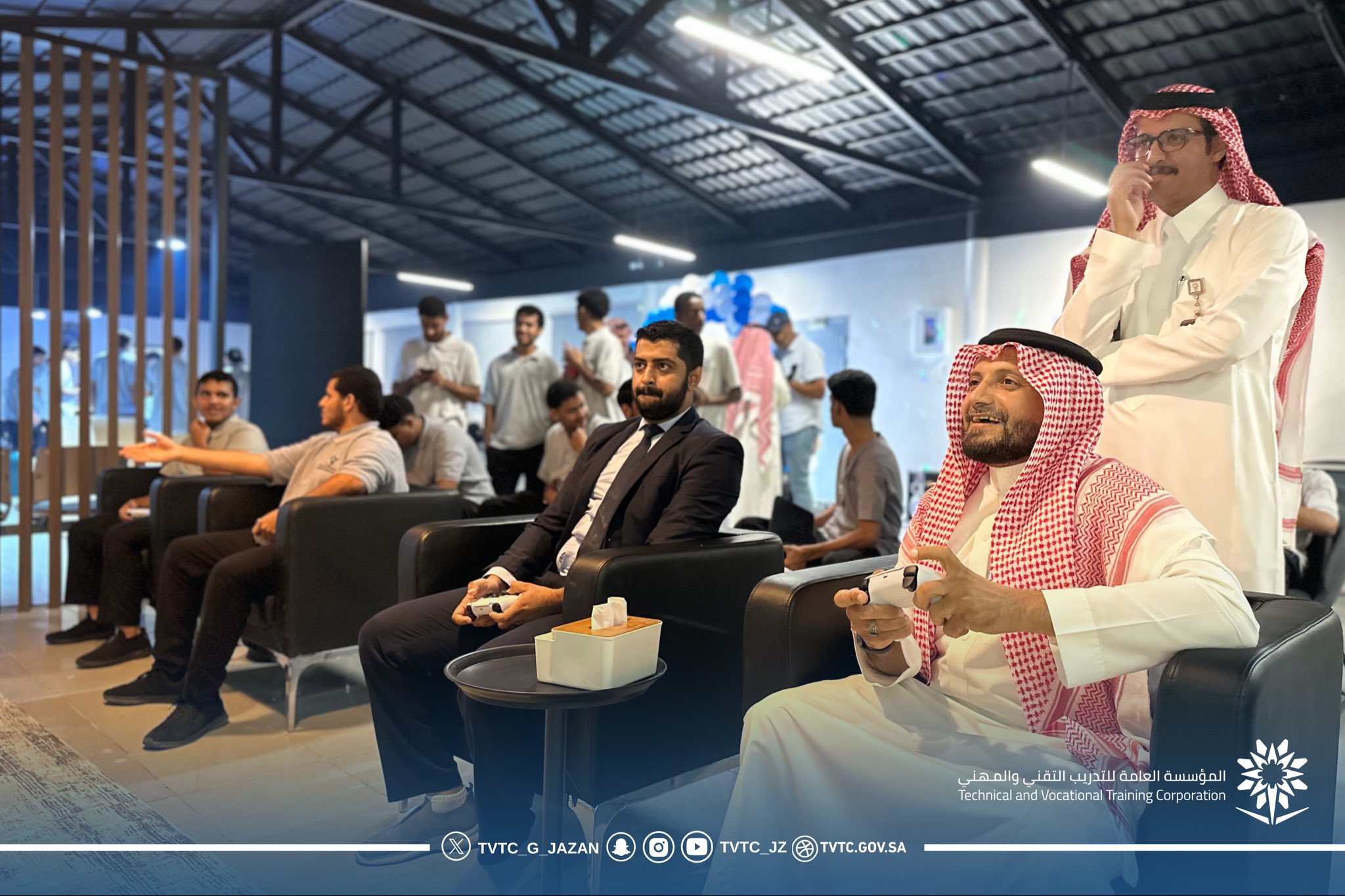 كما تم تخصيص ركن للألعاب الإلكترونية ضمن الصالة، في إطار سعي الكلية لتوفير بيئة تجمع بين الترفيه والفائدة، وتلبي اهتمامات المتدربين المختلفة بطريقة تساهم في تنمية مهاراتهم العقلية والإبداعية.