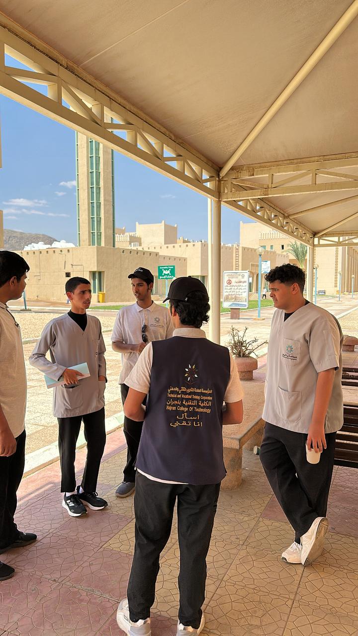 ويحمل الجاكيت شعار الكلية ومركز تقنية المعلومات، إضافةً إلى عبارة “اسأل أنا تقني”، بما يسهم في إبراز هوية الكلية ويُسهّل على منسوبيها طلب المساعدة التقنية من المتدربين عند الحاجة.