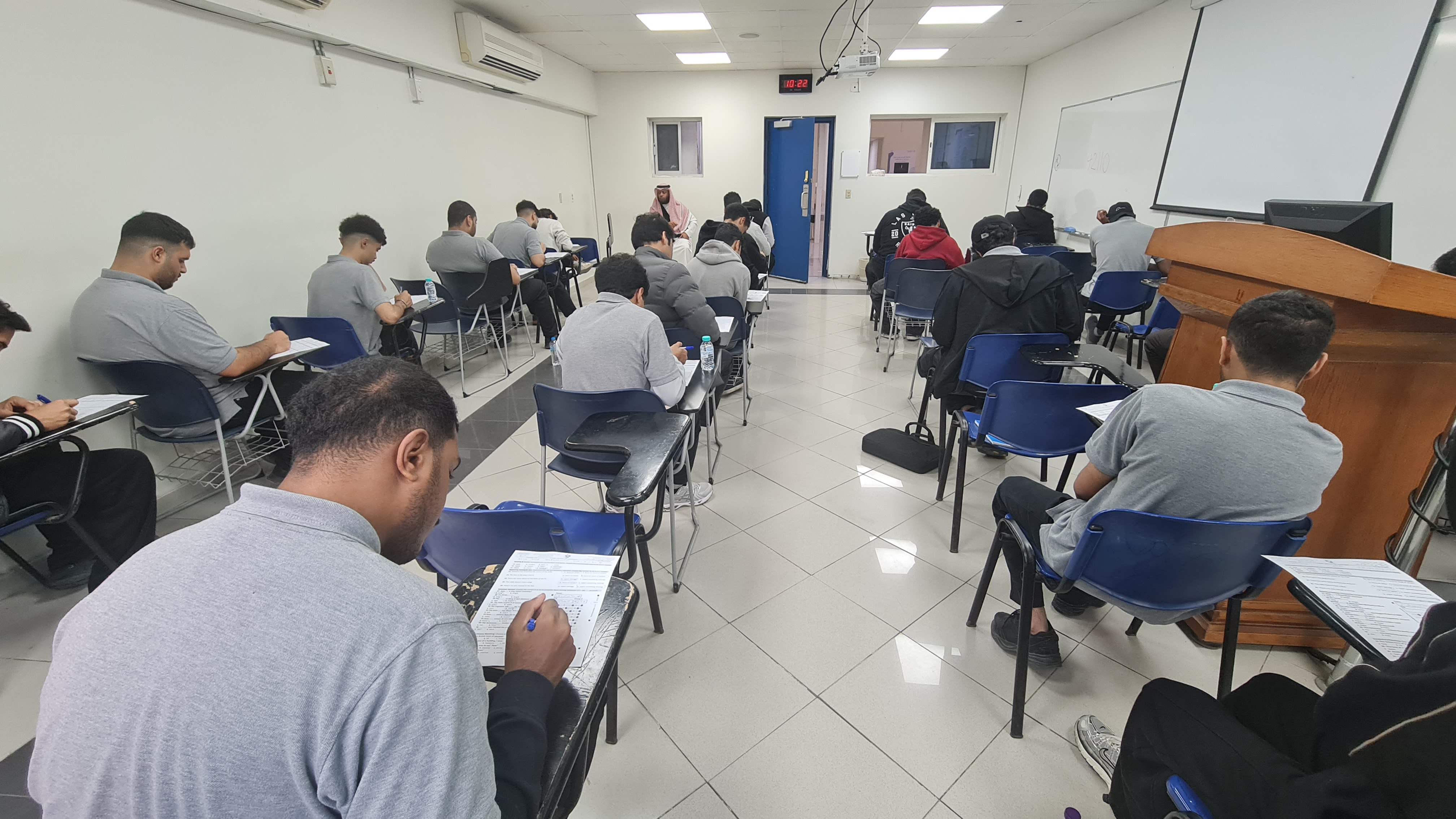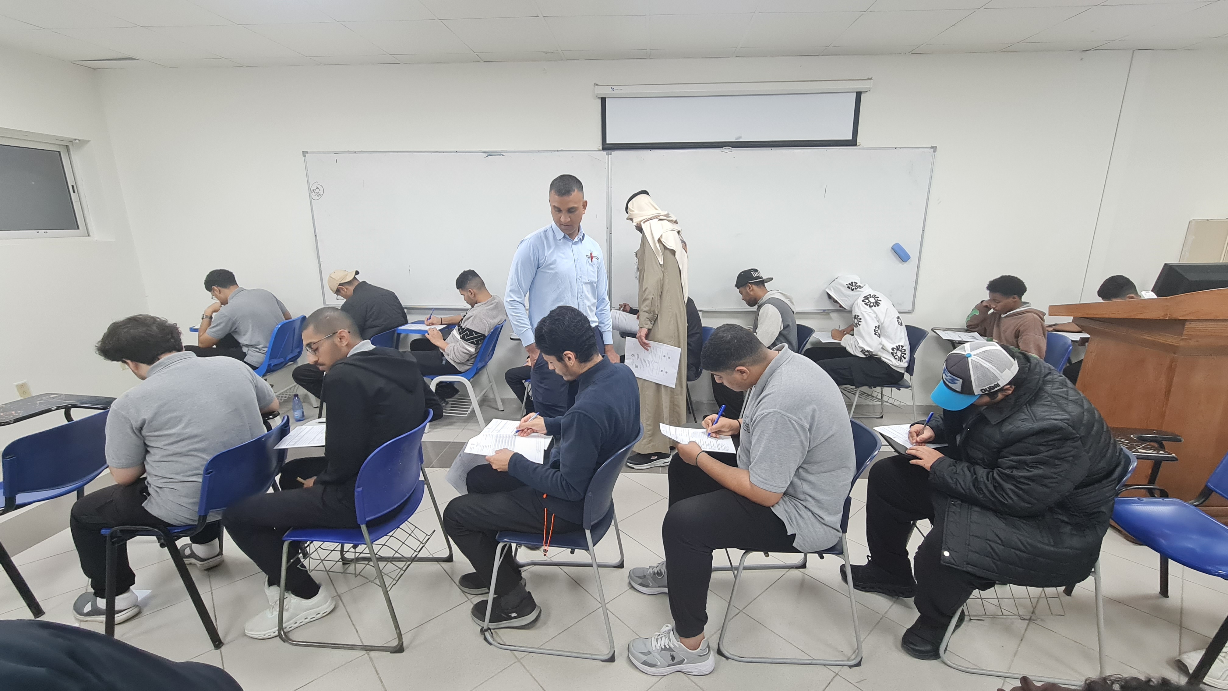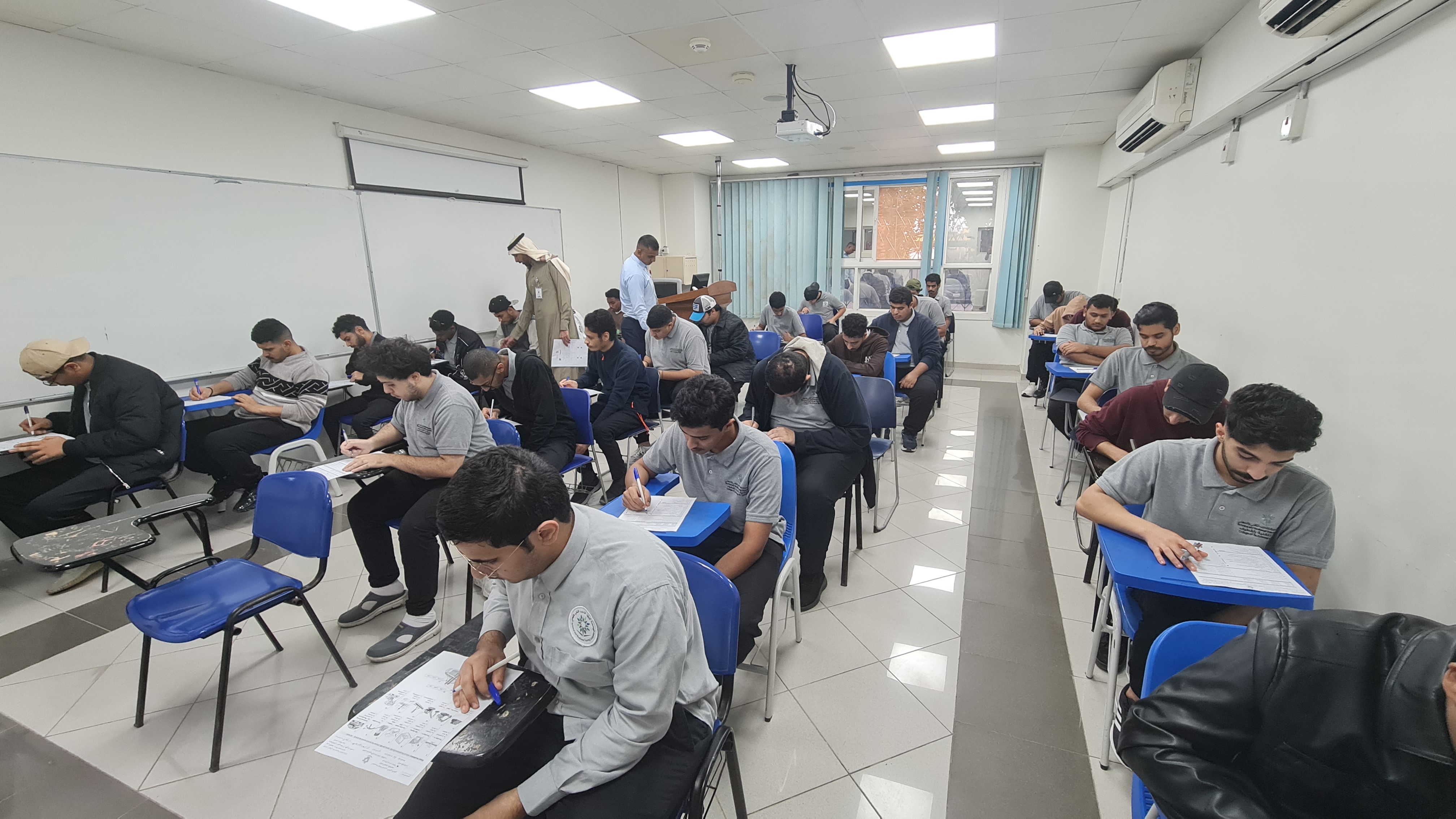 أدى 1800 متدربًا بالكلية التقنية بالقطيف اليوم الأحد 8 رجب 1447هـ الاختبارات النهائية النظرية للفصل التدريبي الأول في مختلف التخصصات التقنية وسط أجواء من التفاؤل والأمل والارتياح في اليوم الأول .