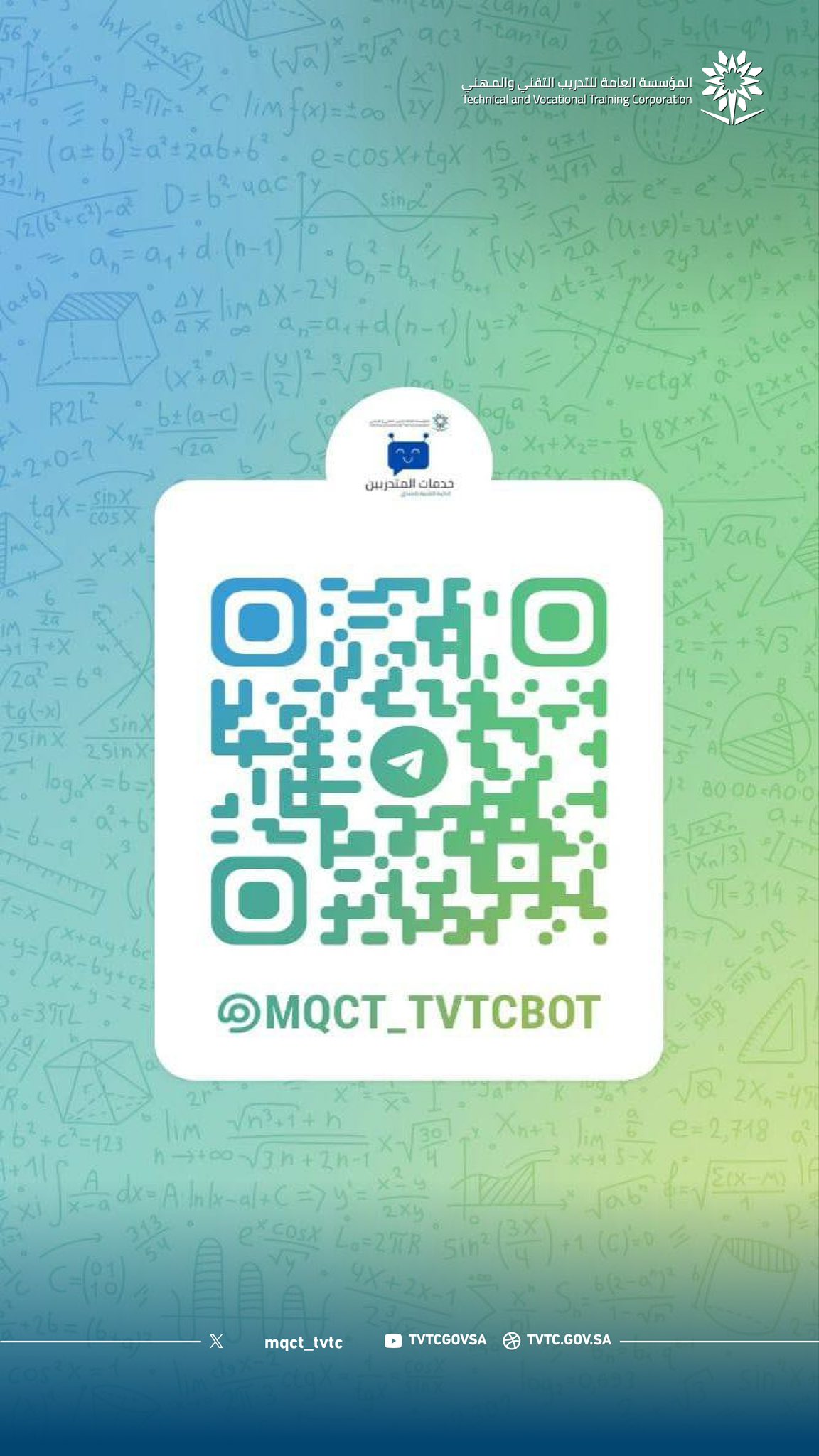 عزيزي المتدرب | بامكانك الان استخدام بوت الخدمة الذاتية للمتدربين من خلال الرابط او رمز QR وذلك بهدف استدامة المعرفة للمتدربين وتحسين تجربة المستفيد رابط البوت
